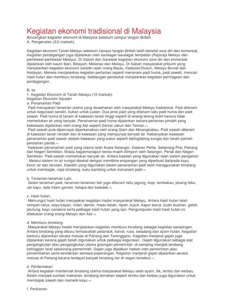 Kegiatan Ekonomi Tradisional Di Malaysia from imgv2-1-f.scribdassets.com Sistem ekonomi adalah suatu aturan dan tata cara untuk mengatur perilaku sistem perekonomian di setiap negara dipengaruhi oleh beberapa faktor, antara lain ideologi bangsa, sifat dan jati diri bangsa, dan struktur. Karena kecurangan tersebut hanya akanaa membuat penderitaan pada orang lain. 10000+ αποτελέσματα για 'kegiatan ekonomi di malaysia'. Inflasi yang hanya sekitar 0,4%. Kegiatan ekonomi sara diri adalah untuk keperluan diri dan keluarga sendiri. Tanaman yang diusahakan adalah tanaman kering. Sektor pertanian di malaysia menduduki tangga ketiga sebagai penyumbang kepada pendapatan dan kemajuan ekonomi negara. Pertumbuhan ekonomi malaysia semakin pulih.